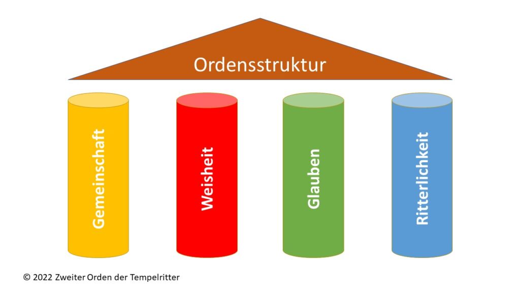 Die Werte des Ordens ruhen in der Gesamtheit auf vier gleichwertigen Säulen.